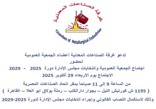 دعوة انعقاد الجمعيه العموميه لانتخاب مجلس ادارة الغرفة دورة 2025 -2029